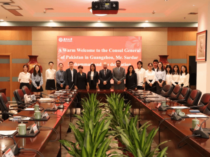 On September 9, 2025, a delegation from the Consulate General of Pakistan in Guangzhou, led by Consul General Sardar Muhammad, visited Xiamen University’s School of International Relations/Research School of Southeast Asian Studies. The delegation held discussions with faculty and students on China-Pakistan relations and regional cooperation.