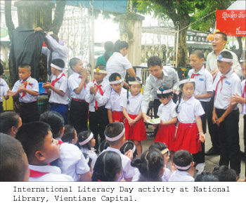 "September 8 was proclaimed International Literacy Day by UNESCO on November 17, 1965. It was first celebrated in 1966 with the aim of highlighting the importance of literacy to individuals, communities and societies,"said Vice Director of the National Library, Ms. Bouakhay Phengphachanh.